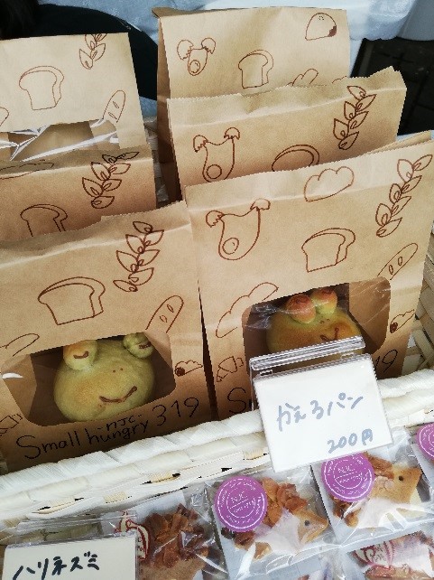 商品には、カエルの形をしたパンやハリネズミの形をしたお菓子を販売しており、夏祭りに来てくれた子どもたちに喜んでもらうことができました。学生たちも子どもたちの笑顔をエネルギーに変えて、暑さに負けず、たくさんのお客様へ笑顔で接客をしてくれました。