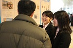 AP事業成果報告会では、食物科の「《県産品を使用した商品開発》についての活動報告」、保育学科保育専攻の「地域の公園遊具の調査研究」、「地域の子育て支援活動」、国際コミュニケーション学科の「Awesome Sasebo! Project(黒島・高島・相浦)」を各学科の学生がスクリーンを通じて発表を行いました。ステージ発表後は、ロビーにて各学科のポスター発表を行い、これまでの活動内容に対して、多くの質問が飛び交う中、学生が笑顔で自信を持って回答する姿が見受けられました。