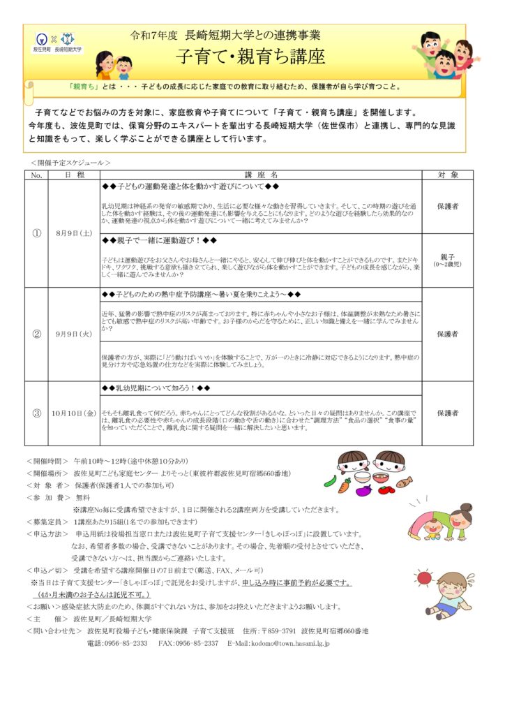 《ご案内》令和7年度 波佐見町との連携講座「子育て・親育ち講座」を開催します