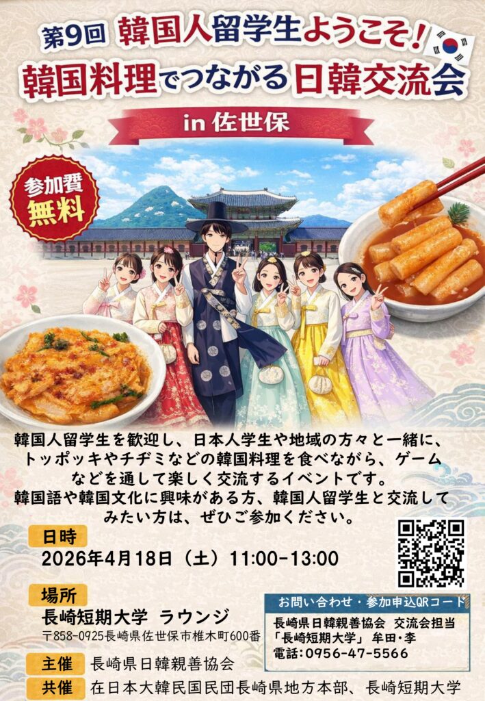 《ご案内》第9回 韓国人留学生ようこそ! 韓国料理でつながる日韓交流会 in 佐世保