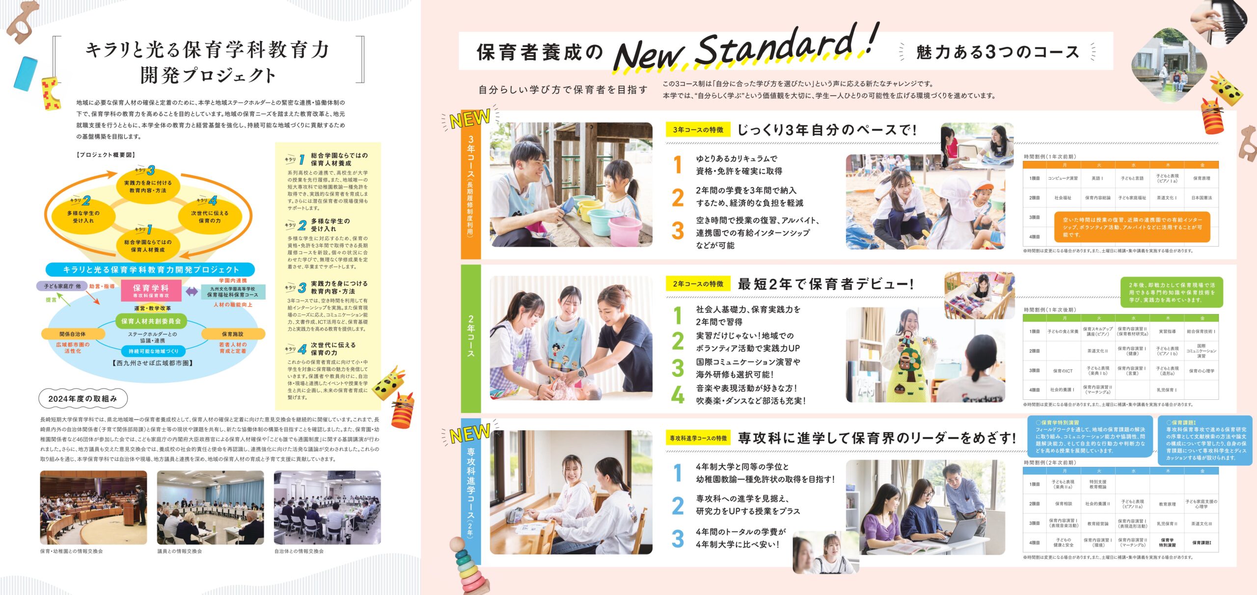 長崎短期大学では、2026年4月より、保育学科に新コース「2年コース」、「3年コース」、「専攻科進学コース(2年課程)」を開設します。