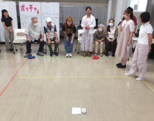 さらに、介護福祉コースの学生たちがモルックやボッチャといった軽スポーツや工作コーナーを企画し、幅広い世代の方々に楽しんでいただきました。また、カフェコーナーではお茶を片手に、地域の皆さまと学生・教員が交流を深めることができました。