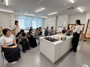食パンの繊維構造に関する説明では、参加者から「初めて聞いた!」という驚きの声も上がり、関心の高さがうかがえました。その後、食パンを使った簡単なおやつ作りを体験し、親子で試食を楽しみながら講座を締めくくりました。