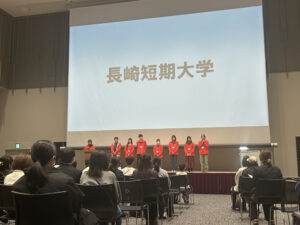本学からは食物栄養コースの学生3名が参加し、長崎短期大学の学びの特色や学生生活の様子について紹介しました。授業内容や資格取得、進路、キャンパスライフなどについて丁寧に説明し、参加者からの質問にも一つひとつ真摯に答える姿が見られました。限られた時間ではありましたが、参加者と直接言葉を交わしながら、本学の学びについて理解を深めていただく機会となりました。