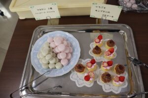 2年生16名は、この日のために2回の試作を経て、22品のお菓子やパンを製造しました。前日の仕込みから当日の提供まで、お客様に思いを寄せ丁寧に製造している姿はまさに職人です。すべてのお客様にご試食いただけるよう、サイズ感や味わいも工夫した結果、来場いただいた皆様からのお褒めの言葉に2年間の成長を感じるイベントとなりました。