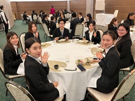 令和7年2月9日(月)、国際コミュニケーションコースの留学生2年生34名と教員3名が、セントラルホテル佐世保にてテーブルマナー講座に参加しました。