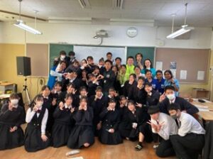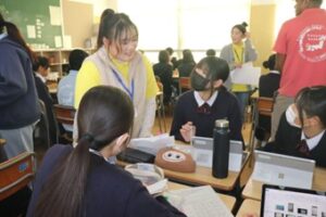 当日は、緊張した様子も見られましたが、授業で紹介した各国の言語を使って挨拶を行うなど、東翔高校の皆さんが優しく声をかけてくださり次第に笑顔が広がりました。「地域の方々に自分の国を紹介する」という貴重な経験を通して、自信を深めながら楽しく授業を行うことができました。