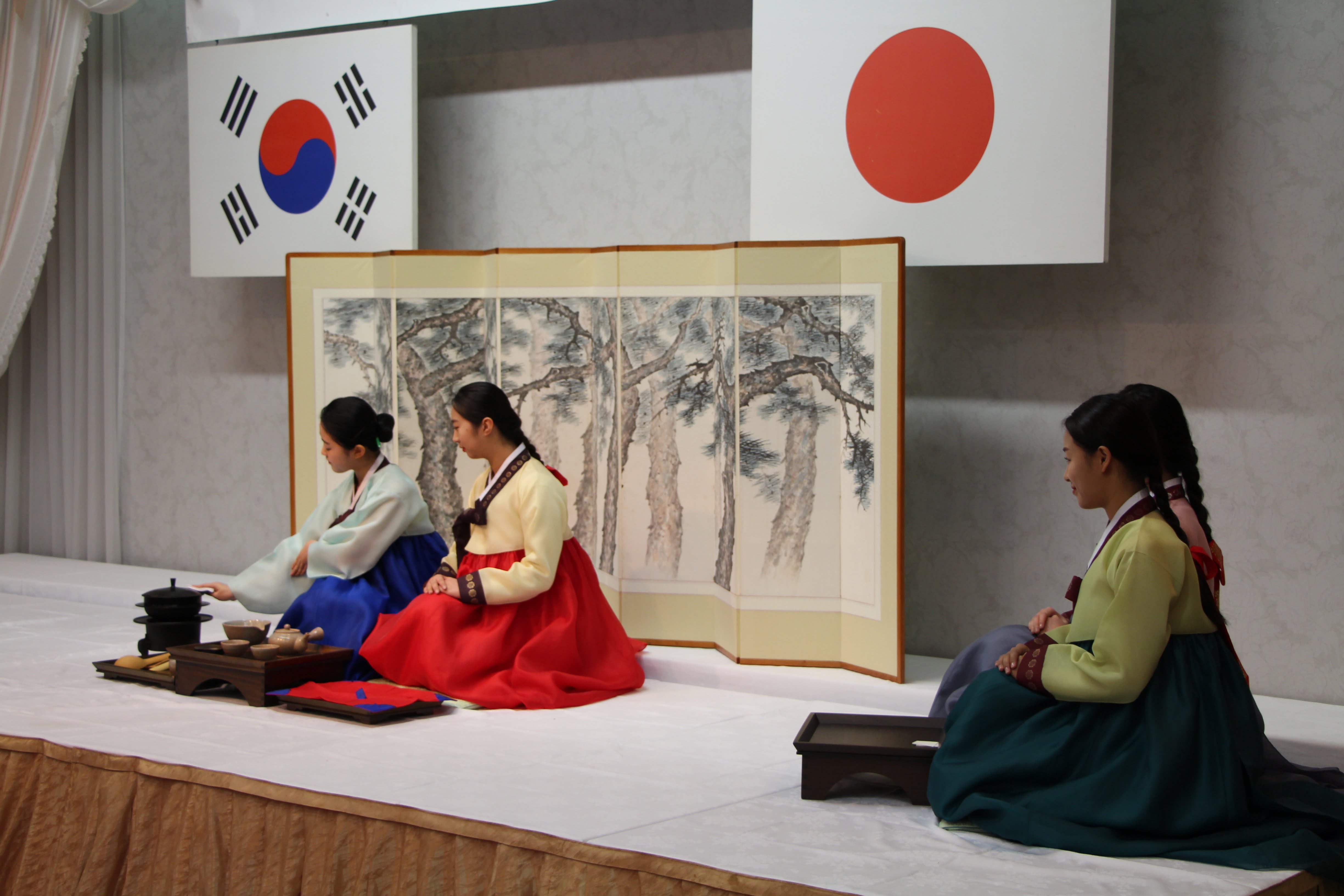 日本人学生と留学生による濃茶席、立礼(薄茶)席に加え、釜山女子大学(韓国)による韓国茶席が設けられました。