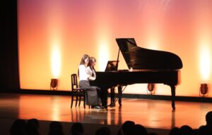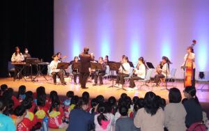 吹奏楽では、子どもたちに人気のアニメソングや楽器紹介、1音・2音・3音のみで曲を当てるイントロクイズを交えながら、会場と一体になって演奏を楽しみました。オペレッタ「SING」では、学生一人ひとりが役になりきり歌やダンスに思いを込め、子どもたちを音楽劇の世界へと誘いました。ピアノ連弾では「ジブリの世界」と題し、スタジオジブリ作品の名曲を披露しました。子どもたちは音楽に合わせて体を揺らし、知っているフレーズを口ずさむ姿も見られました。ダンスでは「絆」「感謝」をテーマに、仲間と支え合いながら創り上げたパフォーマンスを披露しました。力強さと温かさが伝わる発表に、会場は大きな拍手に包まれました。