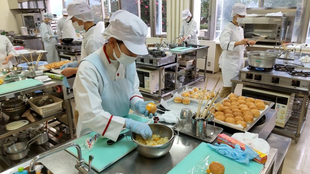 2021年12月14日21日、食物栄養コース1年生9名、教員2名が、SDGsに掲げる地球温暖化防止に基づく食品ロスの削減をテーマに、